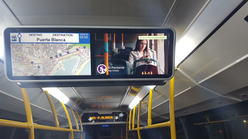 Este año, por primera vez, la Empresa Malagueña de transporte en colaboración con El Penitente muestra durante estos días en las nuevas pantallas informativas, del interior de sus autobuses, nuestro vídeo promocional.