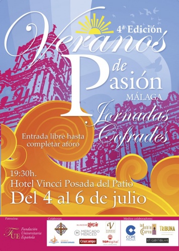 En la mañana de hoy a las 13 horas en el Mercado de la Merced se presentó la cuarta edición de las jornadas cofrades "Veranos de Pasión". Que tendrá lugar los próximos días 4, 5 y 6 en el Hotel Vincci Posada del Patio (Situado en el Pasillo de Sta. Isabel).